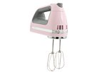 Get legendary KitchenAid performance in an easy-to-maneuver, versatile hand mixer. Stylish retro-inspired design. 7 speeds with two slow stir speeds and one high whip speed. Soft start electronic control adjusts to the resistance of what your mixing for smooth and consistent performance. Stainless steel Turbo Beater cuts through thick dough with ease and without clogging. Beaters are dishwasher safe. Model numbers: KHM720ER (Empire Red), KHM720PK (Komen Pink), KHM720OB (Onyx Black), KHM720WH (White). Weight: 3.0 lbs. Total Height: 5 1 2 in ; Width: 3 1 2 in