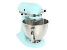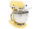 It's the legendary KitchenAid Artisan stand mixer with a few extra elegant touches. This incredibly versatile machine can knead dense dough and whip delicate meringue. 15-speed lever control lets you stir slowly, mix at medium speed or whip at high speed. Motor head tilts back for easy access to bowl and beaters. Special 2-coat finish produces deep, lasting color and shine. 5 Qt. glass bowl with pour spout, comfortable handle and measurement marks. Included accessories: 1 x Burnished Flat Beater 1 x Wire Whip 1 x Burnished Dough Hook ; All-metal construction with an embossed trim band. Contains a power hub for additional attachments. Instruction booklet includes recipes for appetizers, entrees, cakes, breads and more! ; Some parts are dishwasher safe. Refer to instruction book for care and cleaning. Assembled in the U.S.A. Watts: 325 ; Weight: 20.0 lbs. Width: 8 1 2 in ; Height: 14 1 2 in ; Depth: 1 1 2 in