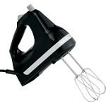 Easy-to-use 5-speed control. Convenient ejector button and comfort designed handle. High-quality stainless steel Turbo Beater accessories. Stainless steel dough hooks. Knead yeast dough quickly and thoroughly with the dough hooks. Stainless steel liquid blender rod attachment. Convert the mixer into an easy-to-use liquid blender with the liquid blender rod, which is capable of mixing up to 32 oz. of beverages, soups, or sauces. No. KHM5APWH: White with brushed silver trim band No. KHM5APER: Empire red with brushed silver trim band No. KHM5APOB: Onyx black with brushed silver trim band